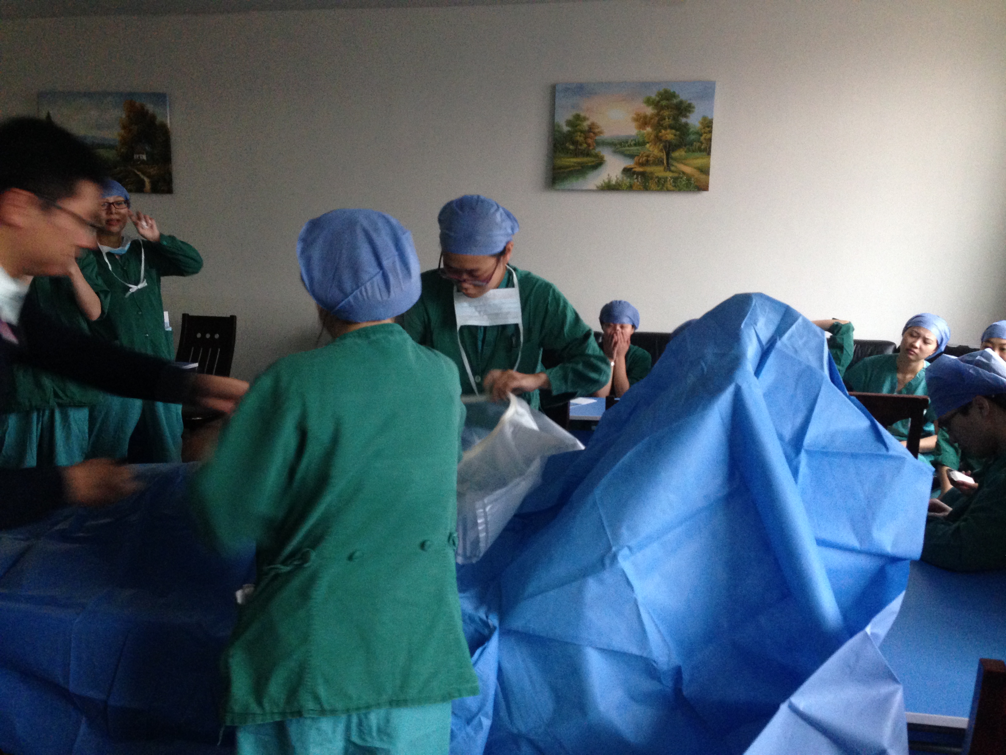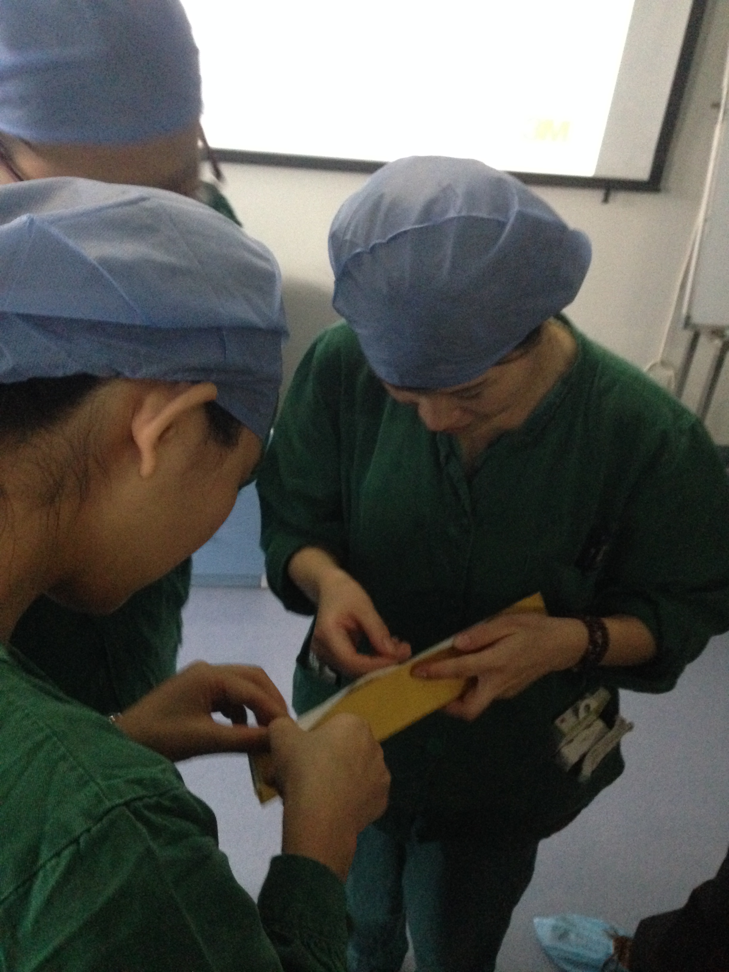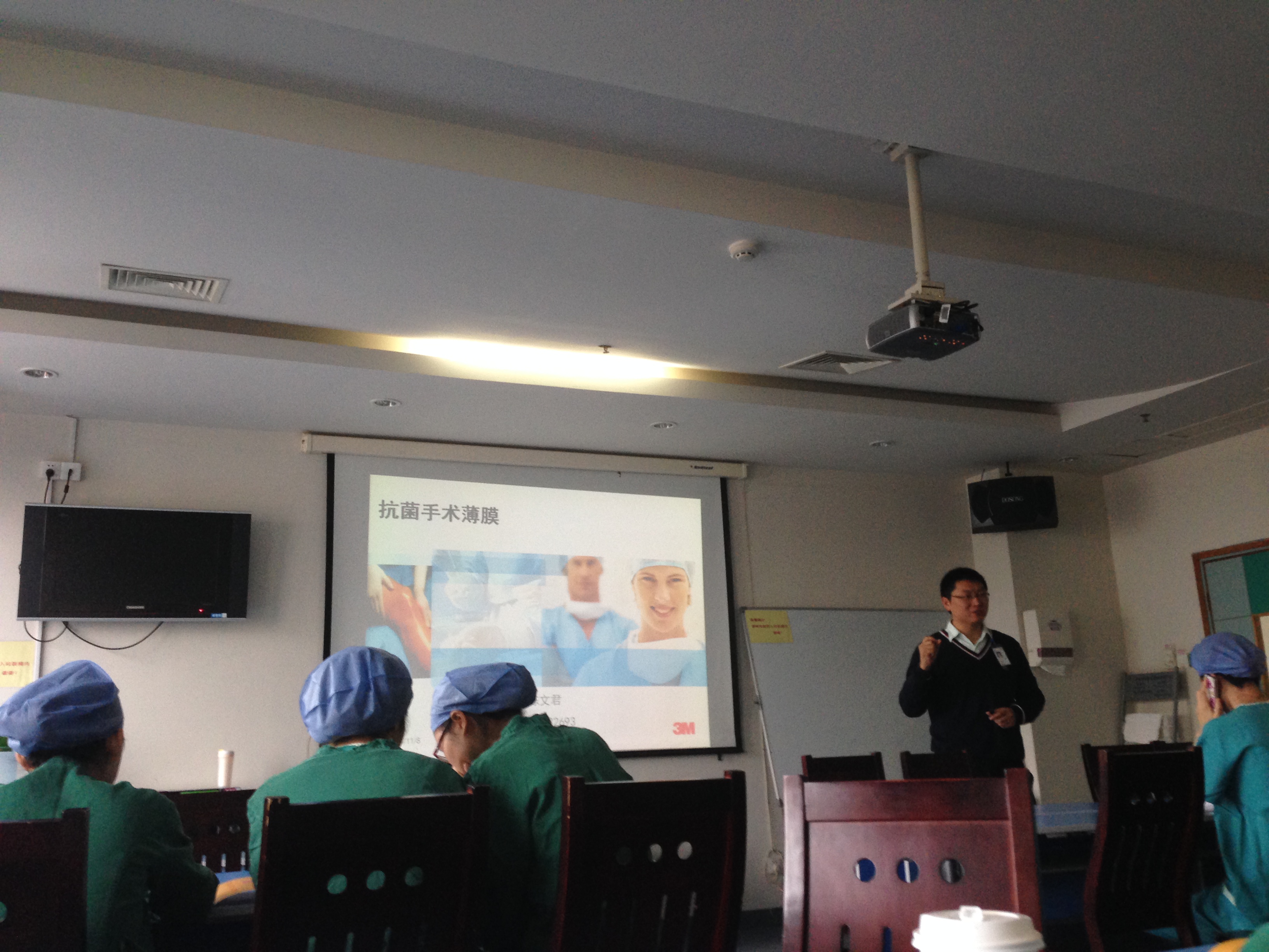 11月8号在护士长毛亚红、陈芬的主讲、记录下,全体手术室巾帼文明岗岗员进行了抗菌手术薄膜产品的培训。