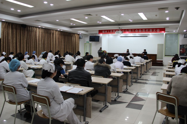 年1月13日下午,经过医院上下的积极努力和认真筹备,鄞州人民医院第十六届工会会员代表大会在门诊四楼学术报告厅召开。全院69名工会代表参加了大会,会议由工会主席郑荣雄主持,党委书记、院长翁国斌作了重要讲话。门诊注射室、肿瘤外科、手术室等的巾帼文明岗岗员代表参加医院工会代表大会。大会顺利选举新一届的工会委员会委员7名、工会经费审查委员会委员3名,郑荣雄当选为新一届工会主席,方意红当选为副主席,童君毅当选为工会经费委员会主任。