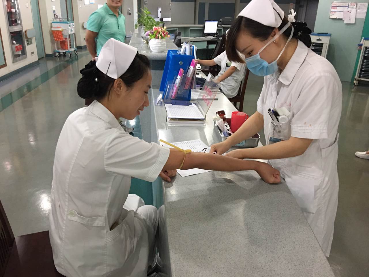 自从2016年光荣的加入了造血干细胞捐献的志愿者后,我们肿瘤外科巾帼文明岗岗员阮芳圆在2017年接到了宁波市红十字会的捐献邀请,有受体配对成功。自此之后,我们的岗位成员阮芳圆积极的锻炼身体,平时非常注意自己的健康,时刻为下一次的配型准备着。2017年10月的一天,市红十字会的工作者来到我们的肿瘤外科巾帼文明岗,为最后一次的配型来抽取血样标本。