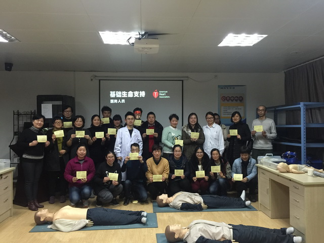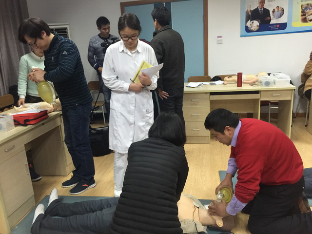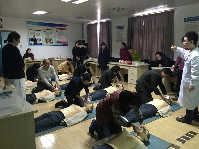 继我院病理科医生方来福救人事件报道之后,宁波的社会民众学习心肺复苏急救技能的强烈愿望又一次被激发,借助我院临床技能培训中心AHA急救培训平台,我院“第一鄞救”与宁波晚报等媒体联合培训100名心肺复苏急救员的行动开始了。1月12日,第一批社会学员来到培训中心BLS教室,他们中有记者、有教师、有工程人员、也有普通的家庭主妇。手术室巾帼文明岗岗员蒋江良凭借出色的操作技能作为导师参与授课。 医院除了直接服务于患者,授人以渔,也是另一种形式的救死扶伤。