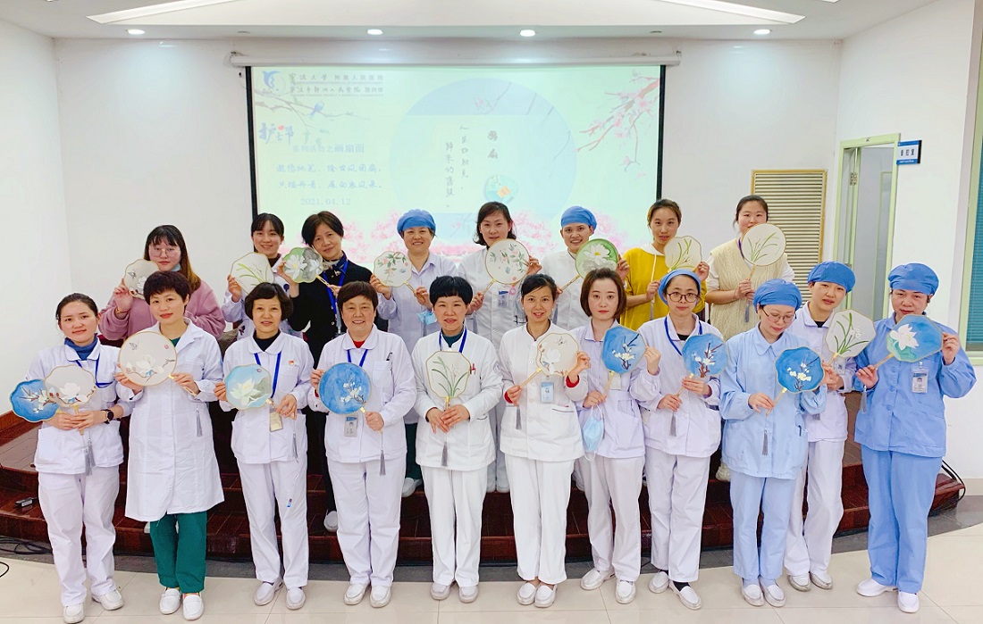 4月12日下午,走进门诊四楼学术报告厅,悠悠散来一阵墨香,只见身着白衣的护士小姐姐们,正聚精会神的描绘着一幅幅工笔花鸟图,纤手执画笔,在絹面团扇上勾、描、点、染,看这阵势,是不是以为这些都是专业级画手呢?其实不然,今天来的都是零基础的绘画“小白”。我们胃肠外科巾帼文明岗岗员阮芳圆也积极参与了此次活动,活动结束,护士姐妹们表示,对于此项活动感到非常满意,称不仅了解了传统国画的基础技法,还在绘画的过程中解压释放了工作压力,以后感到疲累的时候,画画也成为一项解压选择了。