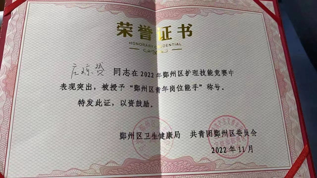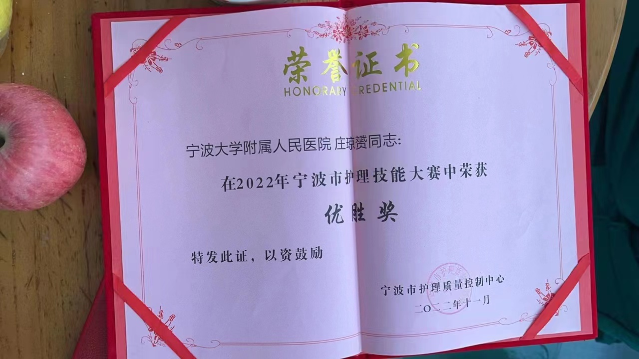 我们胃肠外科巾帼文明岗岗员庄琼赟在鄞州区护理技能赛中脱颖而出,荣获“鄞州区青年岗位能手”,因此被选送宁波市护理技能大赛,在比赛中也发挥稳定,获得了优胜奖。通过此次比赛,我们岗员获得了宝贵的比赛经验,为自己的护理事业画上了精彩的一笔。