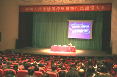 4月8日晚上,鄞州人民医院2010年医疗质量管理暨行风建设全院职工大会在凤凰影剧院召开。党委副书记郑荣雄主持会议。