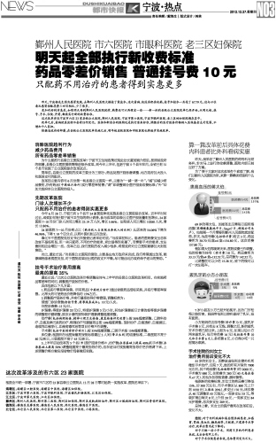 这次改革涉及宁波市六区23家公立医院,鄞州人民医院、宁波市第六医院、宁波市眼科医院、老三区的妇保院都在其中。