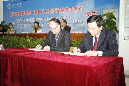 省肿瘤医院综合实力在全国上百家肿瘤医院中排名第7位。按协议,省肿瘤医院将派出放化疗专家、物理师和妇科肿瘤专家各1名长驻鄞州人民医院,还将派出大科主任每月至少两次来查房、门诊或讲座;肿瘤外科、内科和放疗专家在鄞州人民医院挂牌,接受患者点名手术或会诊;优先接受鄞州人民医院的疑难危重肿瘤病人转诊。此外,双方开展肿瘤学的科研合作,五年内帮鄞州人民医院成功申报2-3项省级、国家级科研项目;鄞州人民医院将有计划地派遣临床、医技、护理各科室到省肿瘤医院进修。