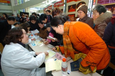 本报讯 昨天是第5个世界肾脏日,本报联合市医学会肾脏病与血液净化分会、鄞州人民医院举行的糖尿病肾病大型义诊咨询活动,如期在鄞州人民医院住院部大厅举行,四五百名患者围着20多名专家仔细地咨询着病情。