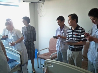 7月17日早上7点30分,上班的铃声一响,十七病区医生办公室的医护人员就已经各就各位了,他们在进行面对面的早交班。参加今天早交班的还有翁国斌院长和郑荣雄副书记以及医务科科长陈雪琴和副科长童竑章、医疗质量管理中心副科长张逸和副科长陈旭维、护理部主任姚红梅、感染科科长谢国海、办公室主任王苗良。这是采取追踪法在进行行政查房,从早交班追踪到病房;从询问高低年资医护人员到查看资料;从现场访谈病人到追踪医生治疗诊断;从科室业务学习、制度执行、自身发展建设到安全管理。无处不在的细节扫视,让医院行政查房更具科学性和实效性。