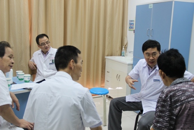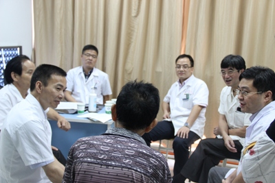 8月26日下午4时左右,一位60岁曹姓病友因患右腰背横纹肌肉瘤术后三年余,发现腹腔肿块一年放疗两个月后,患者腹腔巨大肿块侵犯周围组织,经放疗局部明显缩小,在是否需要手术治疗上申请了来自医院肿瘤专家的联合门诊。参与会诊的专家有:李嘉根、姚星明、李定耀、陈光耀、孙伟亮以及申请医生徐正阳。以下为会诊现场: