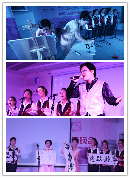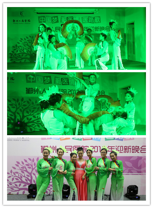 晚会在激情四射的啪啦啪啦舞《浪漫樱花》中拉开了序幕,由新同事们自编自导自演了十二个缤纷欢快的节目,充分展示了各自的才艺,一次次将晚会推向高潮,雷动掌声此起彼伏。给力的《鄞医三句半》笑料十足;温馨的手语表演《感恩的心》、激情魅惑傣族舞《彩云之南》、场景剧《漫谈服务礼仪》、音乐剧《one day》、合唱《爱因为在心中》及歌伴书画《一起走到》令人目不瑕接;扇子舞《荷塘月色》清新艳丽、《年代情侣秀》经典表白的演绎、朗诵《为生命护航》抑扬顿挫,最后,在歌舞《爱》的欢快旋律里,结束了这次精彩的晚会。