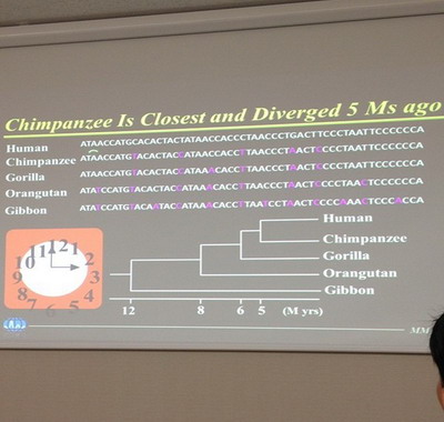 同时教授也讲到了病毒基因测序问题,罗列了和人类所有相近动物的基因组,这也许是当前最先进的研究了。