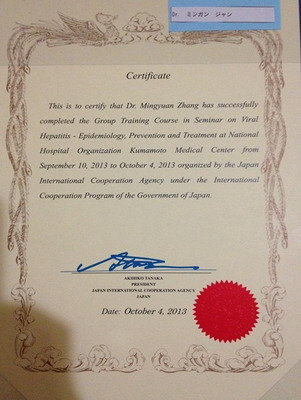 文化渊源,熊本国立医院的院长还特意找到了我这个中国学员,和我畅谈古今。熊本这个地方虽小,却正应了一句诗:山不在高,有仙则名。水不在深,有龙则灵。小小的熊本,培育出了北里柴三郎这样享誉世界的医学大家,深受国共两党尊敬的伟大革命先行者孙文也曾经在这里避难,同样小小的宁波,走出了王阳明这样的心学大家,这些耳熟能详的名字无形中拉近了我们的距离!我们都深深感到中日两国有着太深的渊源,《三国演义》、《红楼梦》等古典小说早已深入寻常日本人的骨髓里,说起诸葛亮、曹操等人物也能一样娓娓道来!另外诗词、服装、茶道、武术等等方面,在文化上的渊源已成为两国可贵的精神财富!