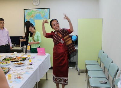 助兴,来自老挝的Chirapha阿姨给大家来了一段原汁原味的传统舞蹈,跳到后来,大家也一起随着音乐翩翩起舞,这个时候,艺术没有国界!