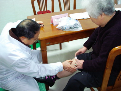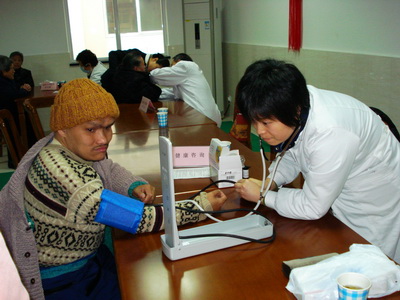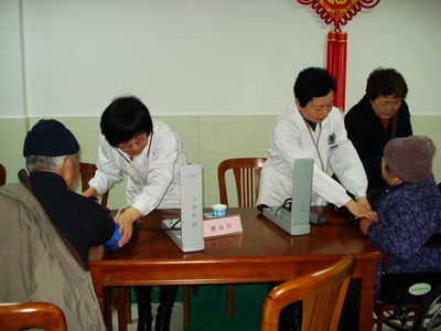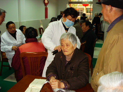 2月26日上午,行政后勤党支部代表医院和老科协专家一同来到江东嘉和颐养院,为老人们检查身体。这个颐养院老人平均年龄82岁,还有一些需要特别护理的人群。为了使义诊真正有效和到位,参加义诊的专家李明主任医师、夏爱绥副主任医师、忻生娣副主任医师、张惠珠副主任护师等9位党员,带着血压计,血糖仪及宣传资料等用整整一上午的时间,一一为老人们检查身体。每一次义诊感觉都是一次受教育的过程,一方面从老人那里学会了乐观和坚强,另一面更从义诊的专家和医务人员身上感受到了爱与真诚。他们认真地抚摸,仔细地倾听,倾心地交流,对待坐轮椅的老人,一边搀扶一边打开衣袖;面对卧床不起,象孩子一样不愿检查的老人,一遍遍走过去规劝……直到老人坐起;李明老专家甚至走进卫生间为老人检查……就这样忙碌着,彼此温暖着,爱无处不在。