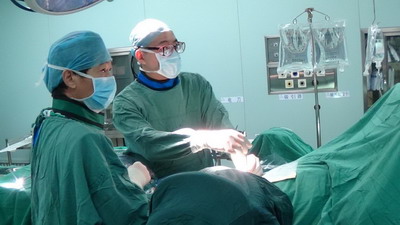 图为台湾专家正在内视镜下进行腰椎间盘切除减压治疗