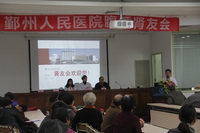 联谊会开始,由肾内科何永平主任致欢迎辞,并详细介绍了肾内科近几年的发展,包括新技术、新项目的开展,特别是尿毒症病人治疗相关内容。