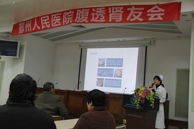 2013年12月8日(星期天)上午,鄞州人民医院肾内科在医院门诊大楼四楼学术报告厅主办了首届腹膜透析肾友联谊会。虽然甬城的天空雾霾严重,家住鄞州区各乡镇、北仑区、宁海的四十几位腹透肾友及家属不辞辛劳赶来参加,同时邀请了几位慢性肾脏疾病IV-V期的肾友来了解自己可能需要接受的肾脏替代治疗的情况。