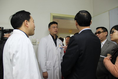 2014年1月28日,农历十二月廿八上午,区委副书记、区长陈国军,区委党委、公安局长林东,副区长夏素贞等区领导,在区卫生局毕校龙副局长的陪同下莅临我院,向我院职工致以新春问候,翁院长代表医院对区委区政府的关心和支持表示衷心感谢,并就医院的发展建设做了简要汇报。领导一行依次慰问了急诊科和三十六病区(隔离病房),亲切慰问春节期间仍坚守在临床一线的医护人员,向他们致以热切关心和新春祝福。医护人员纷纷表示,感谢区领导的关爱,不辜负领导的厚望,坚守好岗位,确保医院春节期间工作的正常运转。