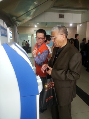 513日上午820分左右,在门诊一楼大厅自助挂号机前看到一红色身影正不停地帮助着病友,仔细观察才发现是我院总会计师王雳科长,原来今天他做志愿者为病人服务。经了解,八楼财务科工作人员每天都会有一名志愿者在一定的时间段,主动到大厅服务!这样的方式和交流不仅增进了医患之间的感情和理解,更建立了良好的医院信誉!