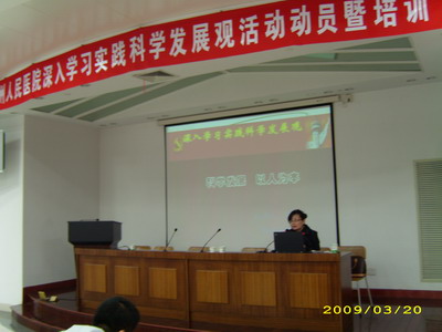 3月20日下午,鄞州人民医院深入学习科学发展观动员暨培训大会在门诊四楼学术报告厅召开,这标志着我院深入细致学习科学发展观活动全面展开。