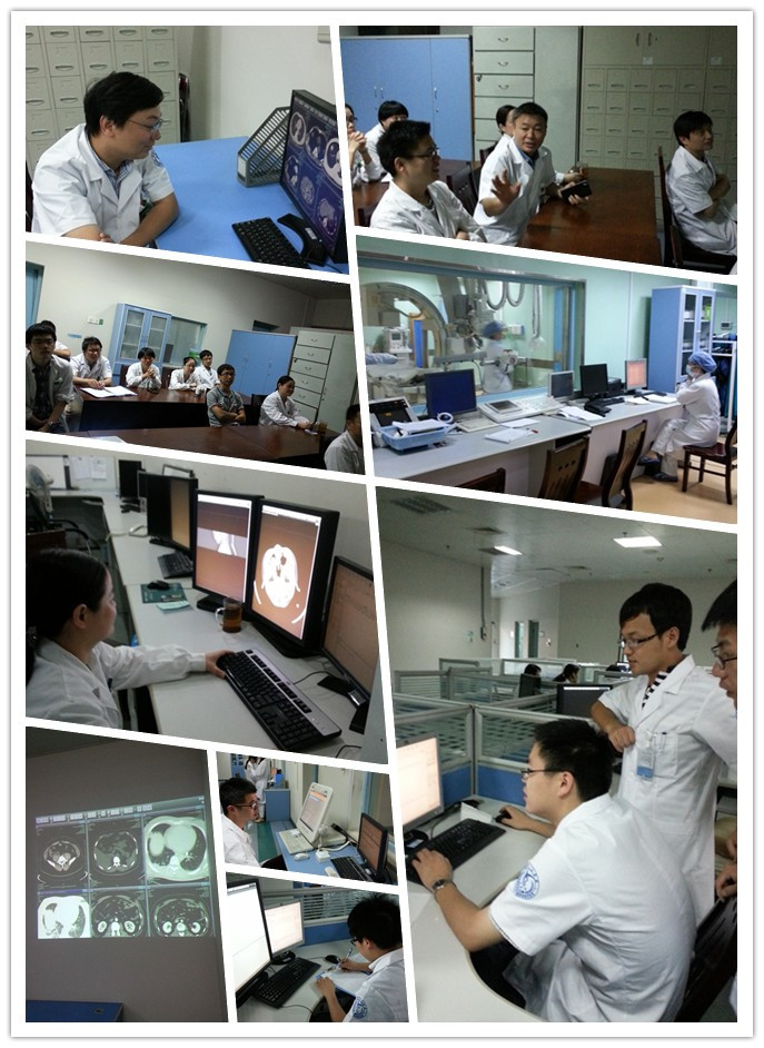 读片会由李盛主任主持讲解,一般都是当天上班的医生参加,通常有20人左右。每次都是针对前一班或收集好的典型及疑难病例,分别从影像学表现、临床、病理基础及治疗等方面阐述自己的观点,每周有一次会由科内医生主讲。近期在我院放射科工作的省肿瘤医院的俞主任也和普通医生一样每天准时参加读片会,认真聆听并表述自己的看法。其中周四早晨还就个案给大家做了专门的分析。