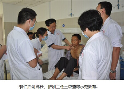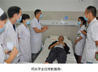 裴仁治副院长、何永平、忻刚主任给内科病区的医护人员进行了“肝硬化、门脉高压症,肺结核”三级查房的示范,并进行了认真的分析讨论,给当地的医护人员进行了极好的教学指导。在医疗帮扶期间,各位专家共门诊260余人次,手术18人次,教学查房25次,其中三级示范查房1次,抢救危重病人5人,急会诊5人次,培训讲课12次,放射疑难读片5例。周守军和李学和二位专家分别帮助指导泌尿外科和妇科开展新技术:周守军医生应用输尿管镜钬激光碎石取石术、腔镜新技术,由于疗效好、创伤小,患者恢复快等优点,受到了当地医生、病人的极大欢迎,广西自治区及重庆市的病人也闻讯赶来就诊,周医生连续数个晚上加班手术,共手术10余例,此外他还在半夜成功抢救一例阴囊广泛撕裂伤伴双侧睾丸外露患者。李学和主任也为该院首次开展腹腔镜下子宫肌瘤粉碎及腹腔镜下子宫切除术等新技术,并对该院妇科医生悉心指导,使该院妇科能独立开展腹腔镜下子宫切除。李医生的高超技术和优良的服务吸引了许多妇科患者,为此她常常废寝忘食,加班加点。
