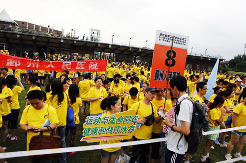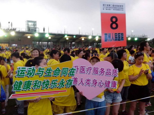 8月8日是北京奥运会开幕的日子,也是我国的全民健身日。周五晚上,随着开幕式结束,我院100名健身爱好者和全市不同单位的参加者组成了浩浩荡荡的队伍行进在东钱湖畔,参与2014年宁波市庆祝全民健身日活动东钱湖健步大会。