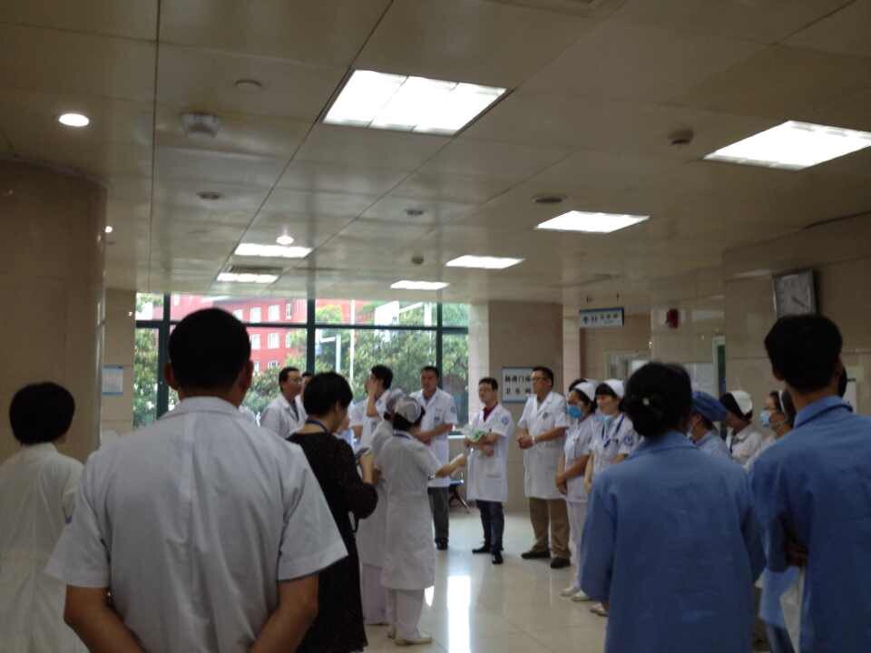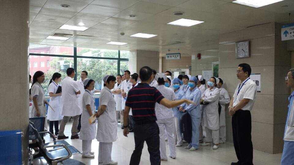 8月21日下午,急诊科护士们都在各自的岗位上有序地忙绿着的的时候,台湾专家隋副院长在医务科科长邬颖杰、护理部主任姚红梅的陪同下,悄悄来到急诊科启动“急诊中量333”应急流程,以检查全院应急小组成员反应情况。