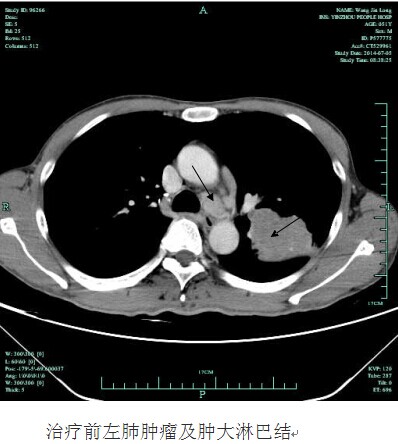 今年50岁家在我市江北区的王师傅,一个月前连续1周突然莫名发热,自行服了很多药都未见好转。由于体温一直徘徊在38.0左右,老王来到我院呼吸科就诊,门诊检查后,发现王师傅血红蛋白明显偏低,考虑贫血,当即将他收治入院。患者入院后,经胸X片等各项常规检查发现,王师傅左侧肺部有一巨大的阴影。进一步的胸部CT提示:首先考虑恶性肿瘤,且肿瘤巨大,有7X8CM大小,肿瘤内部已经发生溃烂坏死,同时远处的淋巴结已经转移。随后的肺活检证实王师傅得了肺腺癌。因为肿瘤已经晚期,错过了手术的机会,王师傅体质又偏弱,恐怕无法耐受化疗,全家人天天以泪洗面,王师傅更是已到精神崩溃边缘。针对患者的严重病情,为挽救其生命,呼吸科学科带头人俞万钧副院长和彭卫东主任,经多次组织科室讨论治疗方案,同时对患者病例通过远程网络会诊,和浙江省肿瘤医院的权威专家制订了放射性粒子碘125置入肿瘤的姑息治疗方案。手术在局麻下进行,其方法是首先在CT定位下确定粒子置入的位置,进定位针,深入肿瘤内部,沿定位针放置放射性粒子。手术非常顺利,术中王师傅一直保持清醒状态,术后3天,王师傅就出院了。昨日王师傅来我院复诊,除早已没有发热症状外,整个人精神状态非常好,和常人无异,胸部CT复查发现左肺的肿瘤已经缩小近一半,更为不可思议的是,王师傅左胸肿大转移的淋巴结也变小了。据悉,接下去呼吸科将为王师傅制定下一步诊疗计划,以抑制肿瘤的再次增长。