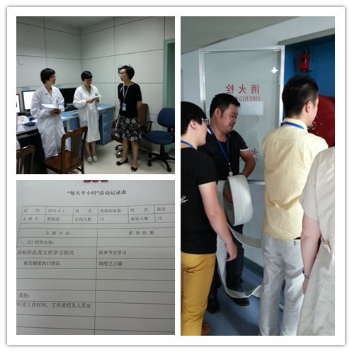 活动开展一周来,职能科室工作人员,纷纷走下去,进入在病区的人员每天早早就到位参加早交班,在医技科室的人员每天布置相应的考核内容,还有在现场同科室人员一起进行消防设施的操作演练……每人每天工作安排得紧密有序。
