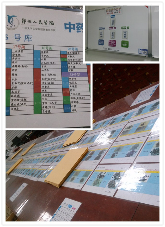 有付出就有回报,不知不觉,中药房的环境焕然一新了,突然感觉药房大了好多,心情也跟着舒畅了。在整顿阶段,在吴主任的带领下,我们对中药房进行了定点定容定量的规划。优化了药柜排序摆放,新增了药柜排列表和库房药品排列标示图,将先煎后下纸、大小包装袋等物件分类定置存放,免去了以往需要时各处搜寻的麻烦,提高了工作效率。