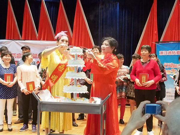 “祝你生日快乐,也祝我生日快乐!”会员们相互道贺。2014921日上午,鄞州区癌症康复协会“庆五岁生日”颁奖大会在鄞州党校鄞州厅隆重举行。省癌症康复协会喻华芝、区慈善总会会长朱禹宝、区民政局副局长杨波等出席了此次特殊生日会。