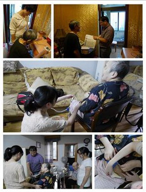 来到病人家里,我们看了他们的腹透操作环境、了解了他们的饮食情况,尿量及超滤情况,并且有针对性地进行了查体,这其中包括:给病人测量血压、测量血糖、检查病人导管出口情况、病人有无水肿等等。另外,我们还跟病人及家属进行了交流,以希望在交流的过程中发现病人的心理状况和社会回归情况。