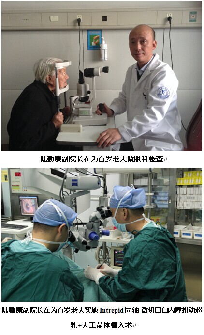 11月中旬,蔡爱凤老人在子女的陪同下来到了鄞州人民医院眼科中心。正在坐专家门诊的该院副院长陆勤康主任医师听了老人的来意后,仔细对老人的眼睛作了检查。针对老人双眼晶体混浊程度非常严重,角膜内皮数量少,功能差,视力只有眼前指数,加之百岁高龄,手术耐受性差,风险和难度较大,一旦术中血压和心脏出现问题,很可能会危及生命的现状,陆勤康经为老人做了眼科及全身的详细检查和组织全院相关科室专家会诊后,最后同意给老人施行手术为她实现复明心愿。