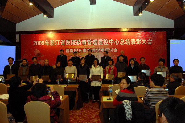 由浙江省医院药事管理质控中心、浙江省医院协会药事管理工作委员会共同举办的“2009年浙江省医院药事管理质控中心总结表彰大会暨医院药事管理学术研讨会”于2009年12月19日在杭州隆重召开。我院在省级检查中成绩显著,药剂科的管理水平、业务素质以及工作理念在省内同类医院中处于领先地位,获得“浙江省医院药事管理优胜奖”。