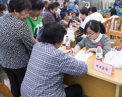 当天下午,在当地村委会的主持下,第六届药学下乡服务活动正式开始。叶亚菊主任药师以“老年人安全用药知识”为主题,利用身边真实发生的案例,向当地村民讲述老年人应该如何安全合理用药,获得了在座村民的一致好评。讲座结束后,专家志愿者们还在甲村菜场门前,按各自分工依次摆开咨询台,整理小药箱、用药咨询、问卷调查、发放礼品、义诊等依次有序进行,药师们耐心地回答居民所提出的问题,讲解安全用药的知识,帮助居民整理家庭常备药品。