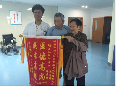 不久后,待老爷子病情稳定后,从鄞州人民医院神经外科转到了康复科,正式开始接受系统康复治疗。康复刚开始的时候,老爷子常常累得想放弃出院回家,但在家人与治疗师的共同鼓励下,他咬牙坚持了下来。四个多月的努力,既包含了老人家为训练付出的汗水及泪水,也夹杂着我们治疗师的不懈努力及耐心指导。终于,老爷子重新扶起拐杖走路了。老太太激动地满含泪水,紧紧拉着徐医生的手久久不愿放下。说不尽的感激之词也无法表达出她内心的无限谢意。