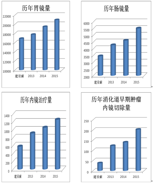 2015年,我院消化内科在院领导的大力扶持和科室人员的努力拚搏下,再创佳绩。目前,该科内镜中心检查与治疗数量跃居宁波市各大医院前两位。