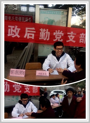 爱心筑和谐 ,春暖百姓心。随着学雷锋志愿者服务月活动序幕的拉开,我院行政后勤党支部积极响应。3月2日下午,携手中医科陈贤峰医生加入了华侨城社区阳光便民服务的行列。陈医生利用休息时间为社区百姓搭脉问诊,受到了老百姓的热捧。