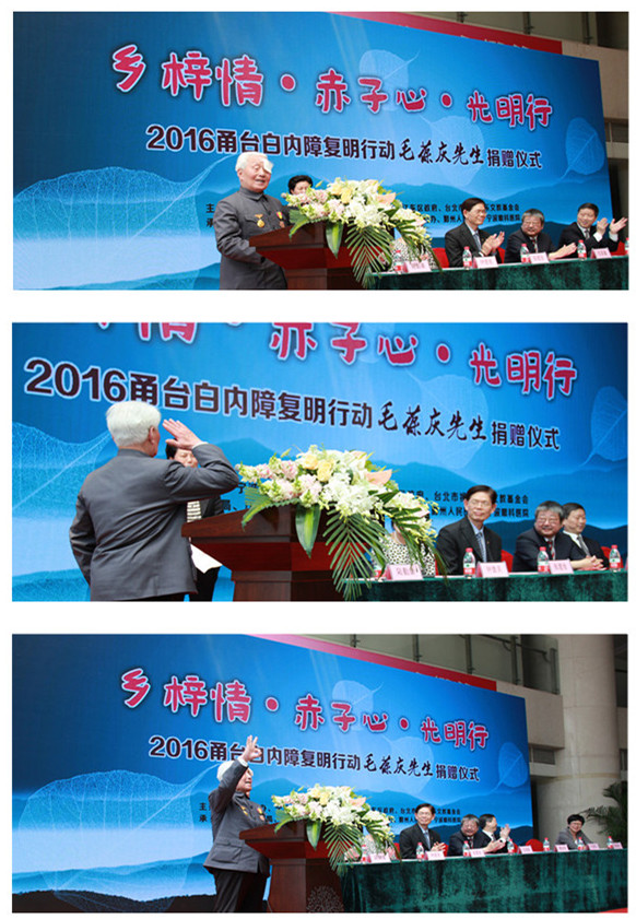 甬台白内障复明活动于2005年启动。近10年来,祖籍宁波市北仑区霞浦镇,今年90岁高龄的毛葆庆先生,多次通过台湾爱盲协会向我市眼疾患者捐献角膜、人工晶体及手术耗材,使我市一批家境贫困的眼疾患者重见了光明。今年甬台白内障复明活动,毛葆庆先生再次向我市捐赠了100枚美国进口优质人工晶体,委托浙东眼科专病中心、宁波市眼科学重点学科鄞州人民医院眼科中心等2家医院实施手术,帮助贫困白内障患者重见光明。
