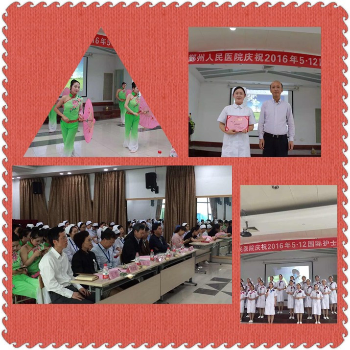 鄞州人民医院在国际护士节来临之际,在院领导的支持下,响应国家卫计委的号召,希望各医院认真组织热烈庆祝国际护士节活动,我院也组织了一系列积极向上的庆祝活动。5月9号下午15:30,在医院四楼多功能厅,举办了隆重的护士节庆典活动,庆典大会上院领导班子全体参加,会上,分管院长做了热情洋溢的致辞,还给予全院护士美好的祝愿,同时也给护士提出了更高的要求!护理部主任介绍完与会领导,顿时会场进入一种祥和喜悦的氛围之中,护士姐妹们个个精神饱满,喜气洋洋,大家载歌载舞,第一支歌是我们善良美丽的护士,用她们高昂的歌喉,唱出了职业的纯真,职业给人类带来的健康,还有职业的平凡与艰辛。虽然节目不多,但主持人将其连贯的有声有色,别有一番节日大型庆典之雏型。精彩节目完毕,颁奖也许是庆典的主旋律,护理部主任公布了各类获奖名单之后,邀请院领导给获奖护士颁奖,获奖项目丰富多彩:有最佳天使奖,爱心护士奖,优秀论文奖,技能拔尖奖,夜班最多奖,优秀品管圈奖等。最后,院长做了重要讲话,首先给予了全院护士节日的祝愿,同时也肯定了护理工作者做出的成绩,还分析了医疗环境面临严峻形势,最后给大家提出了希望和要求。