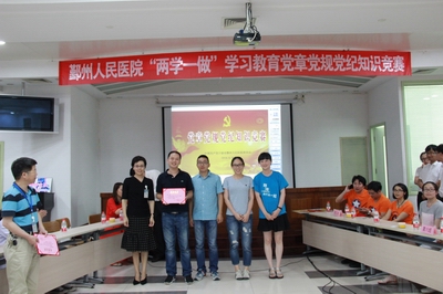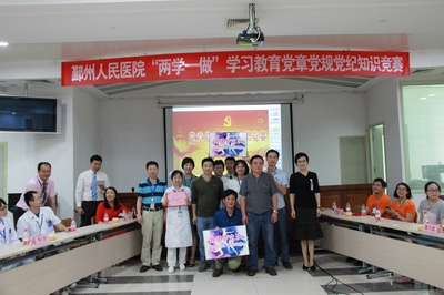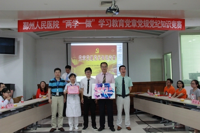 院党委书记俞万钧表示,本次举办的党章党规党纪知识竞赛是“两学一做”学习教育的一种方式和载体。医院积极开展“两学一做”学习教育,旨在通过“学党章党规、学系列讲话”,进一步增强党员干部的党性意识、宗旨观念,强化党员干部遵守党章党纪的自觉性。希望全体党员要立足于如何真正“做一名合格的党员”,在本职岗位上,在医院发展中,切切实实发挥模范引领作用!