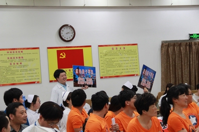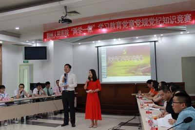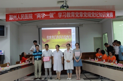 6月30日下午,“七一”党的生日来临之际,鄞州人民医院党委举办了“两学一做”学习教育党章党规党纪知识竞赛活动。来自六个在职党支部、团委以及民主党派的八个参赛队进行了激烈的现场竞答,院领导及党员、团员、民主党派等100余人参加了观摩,并为自己的参赛队伍加油助阵。