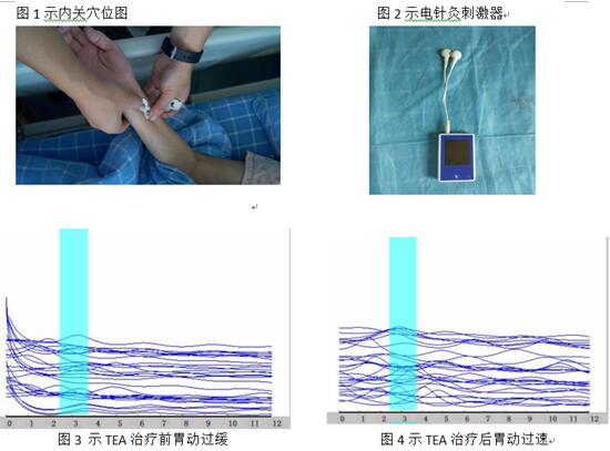 目前常用来改善胃肠动力的方式包括,胃肠减压,营养支持,胃复安、爱维莫潘等促动力药物治疗,也有报道称胃镜对胃壁的刺激可以促进胃动力。大量研究认为电针灸可以用于治疗化疗引起的恶心、呕吐,功能性消化不良,功能性便秘;近期发表在消化界顶级期刊胃肠病学一篇随机对照研究发现针灸可以缩短术后排气排便时间,更早的耐受固体食物,减少平均住院日,但是穴位针灸治疗属于有创性操作,过程较复杂,对施治者要求高,患者依从性低,因而我科创新性应用了经皮电针灸(TEA)刺激治疗的新方法。