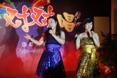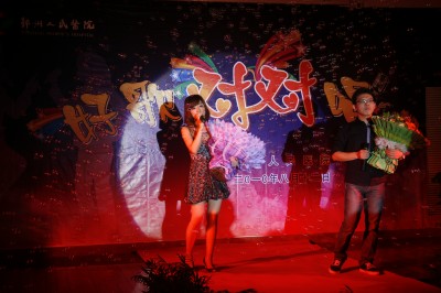 由21个科室选送的20对选手为现场观众带来了一首首风格迥异的歌曲,有流行的、有怀旧的、有抒情的、有奔放的,充分展示了我院白衣天使的风采。选手们在歌唱技艺上不但使出浑身解数,在服装搭配、舞蹈等方面也别出心裁,各出奇招。精彩的演绎,默契的配合,为现场观众带来了精彩的视听享受,优美的歌声赢得了在场观众的阵阵喝彩。值得一提的是阵容庞大的大众评审团和各组选手的后援团成为现场一道亮丽和温馨的风景。特别是各科的后援团卖力地为自己的同事欢呼,轮流的献花、吹哨,有的还制作了海报和横幅加油助威,尖叫声、助威声不绝于耳。台上激情,台下热情。台上台下融会成了一片欢乐的海洋。