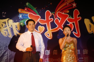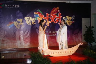 8月12日下午,“好歌对对唱”比赛在院门诊四楼报告厅隆重举行。区卫生局副局长毕校龙、副院长裴仁治、党委副书记郑荣雄等出席本次比赛并兼做评委。