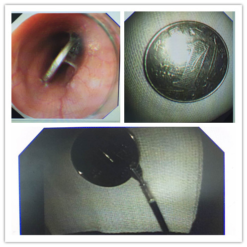 这名孩子在跟同学玩闹过程中,不小心将一元硬币吞入腹中。其父母闻讯后急坏了!患儿有明显吞咽疼痛感,经市内一家医院拍摄胸片提示,硬币在胸骨附近,正卡在食管中,由于患儿年龄较小,取出难度大风险高,医生建议其前往杭州上级医院治疗。患儿家长经多方打听之下辗转找到了鄞州人民医院消化内科许丰主任,许主任在了解情况之后,将孩子收入内镜室。内镜室护士一边安抚孩子,一边细心为孩子选择适合取异物镜型中最小的胃镜。和所有孩子一样,这个10岁的孩子,看见医生后所有的安抚都不管用了,第一反应就是哭泣挣扎不肯配合。于是孩子父母哄吓齐上,许主任在护士的配合下,熟练地将胃镜管插入孩子口腔,在距门齿28cm处,用胃镜钳将硬币夹住后取出。整个过程不到3分钟,好像我们宁波老话说的“落手比冲手快”。
