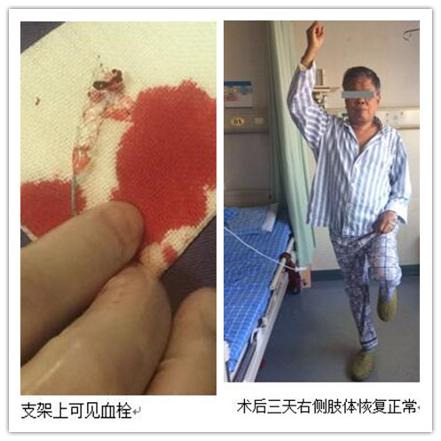 晚上12点,移动卒中治疗团队成员、该院神经外科王慧晓主任医师及陆洲、梁瑞嘉俩名医师,见王老伯经实施静脉溶栓一小时神经功能没有丝毫改善,当即决定改静脉溶栓为实施动脉溶栓+支架取栓手术。在放射科DSA手术室,负责主刀手术人员的陆洲、梁瑞嘉俩位青年医师,通过对老人实施血管造影明确其左侧大脑中动脉栓塞后,经实施“动脉支架取栓术”微创手术,一个半小时后,老人原先毫无反应的右侧肢体迅速恢复知觉。术后第二天,老人能与人言语交流,第三天能下床活动。