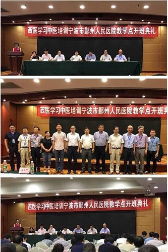 8月12日,鄞州区“西医人员学习中医”培训班在新舟宾馆宁波厅举行开班仪式,来自宁波市鄞州人民医院及鄞州区各基层医院的122位在职执业医师开始接受学制两年的中医专业培训。宁波市鄞州区卫计局局长水黎明、副局长毕校龙、朱宇、宁波市卫计委中医药管理局局长徐伟民、浙江中医药大学继续教育学院副院长石磊峰、浙江中医药大学继续教育学院科教处张红英、王君以及鄞州人民医院院级领导班子全体成员出席开班仪式,开班仪式由鄞州人民医院党委副书记郑荣雄主持,院长陆勤康、浙江中医药大学继续教育学院副院长石磊峰致辞,宁波市鄞州区卫计局局长水黎明、中医药管理局局长徐伟民分别发表讲话。