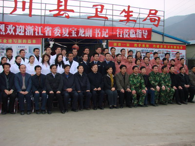2月25日,浙江省委副书记夏宝龙同志代表省委省政府来到青川对我们宁波卫生医疗援建队进行亲切慰问。他对宁波卫生医疗援建队的工作给予了充分的肯定,并勉励我们继续保持高昂的斗志,圆满完成卫生援建任务,平安凯旋!我和鄞州疾控的张信江同志代表鄞州卫生系统参加了会见并合影留念。