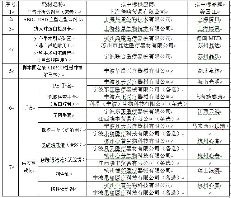 宁波市鄞州人民医院采购血气分析试剂盒等医用耗材议标项目结果公示